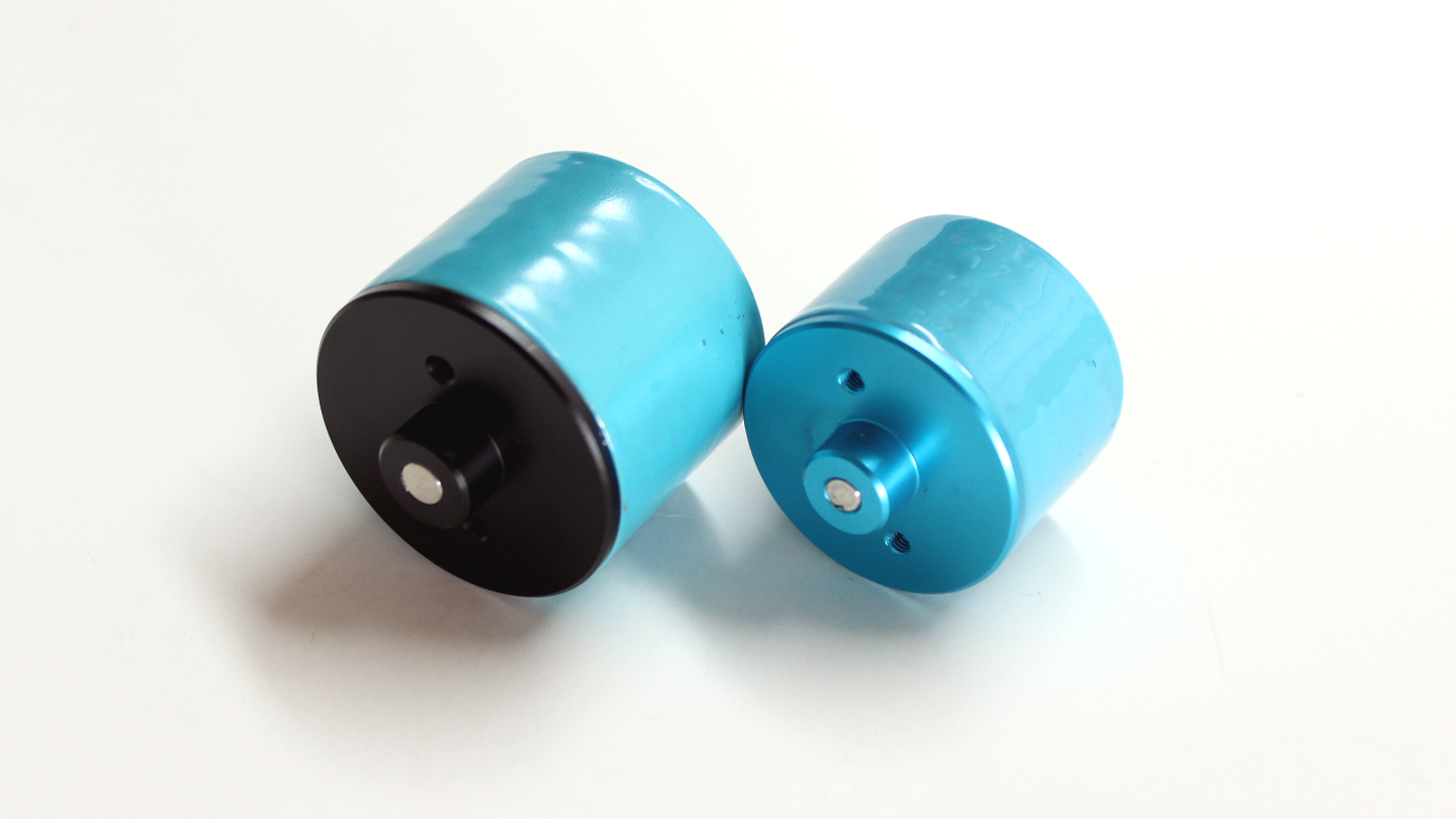 T200 rotor (left) compared to T100 rotor (right). The T200 has a larger diameter, more magnets, and a larger 5mm shaft.
