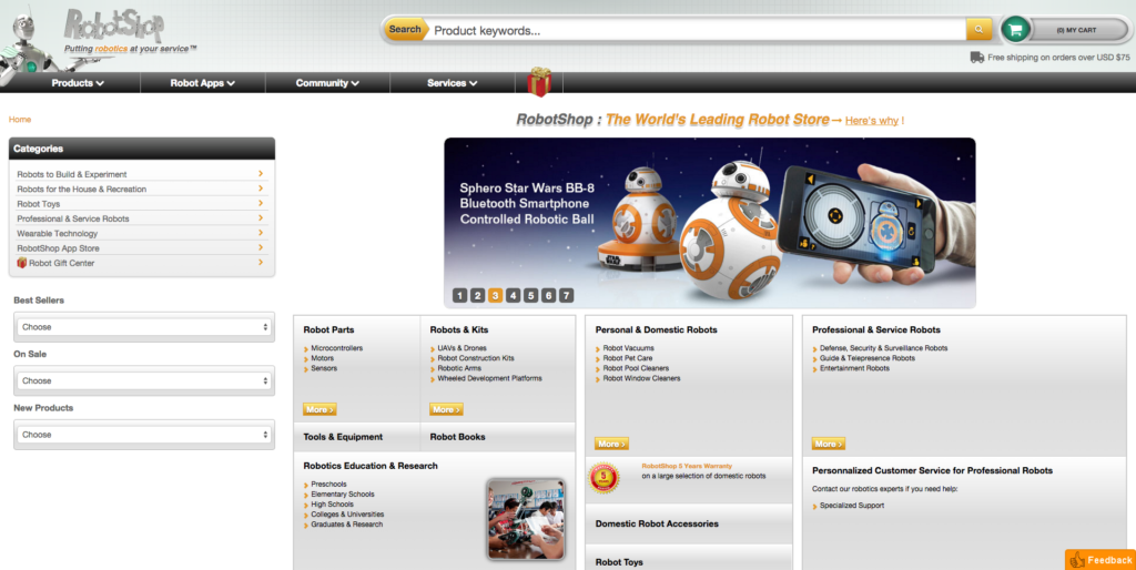 RobotShop specializes in personal and professional robot technology and offers a wide range of robotic products and services in the industry. They have offices in the US (Swanton, VT), Canada (Mirabel, Québec), and France (Gonesse). They’ve been enabling makers and robot users since 2003 and we are excited to be a part of their community!