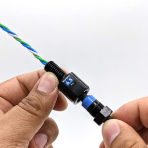 Strip the outer jacket from ~300mm/12″ of cable at the end opposite the red Display connector. Make sure you have sufficient cable for the distance from the connector on the Display to the penetrators on the port hull. Cut the cable shorter before stripping if you’d like, but ensure the length your stripping is not required to reach from the display to the hull. Once you’ve verified the length, pass the conductors, colored red & black, through the 5.5mm LC Wetlink penetrator, and secure. Our Wetlink assembly guide has more information on this procedure.
