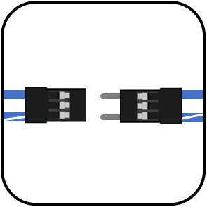 0.1″ Header (3 position with positions 1 and 3 populated)![]() | 1 | Solid color wire | Blue Orange Green Brown |