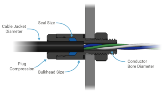 Seal SizeBulkhead SizesConductor Bore DiameterPlug CompressionJacket Diameter RangePart NumberDiagram