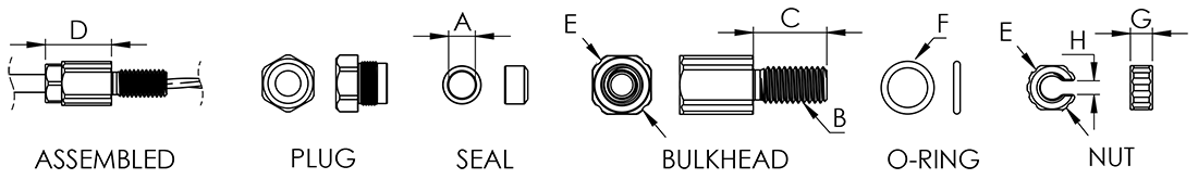 Seal SizeBulkhead SizesConductor Bore DiameterPlug CompressionJacket Diameter RangePart NumberDiagram